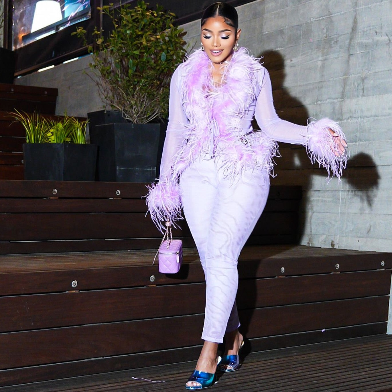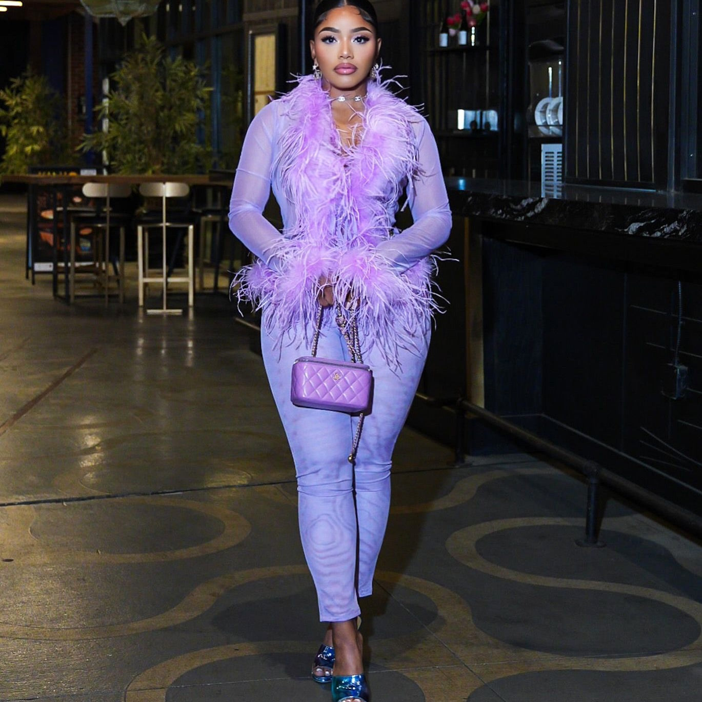 Indulge in unparalleled glamour with our luxurious Ostrich Feather Set — featuring a fluffy feather-rimmed top and sultry sheer leggings that exude elegance and allure. As seen on Erica Pinkett.