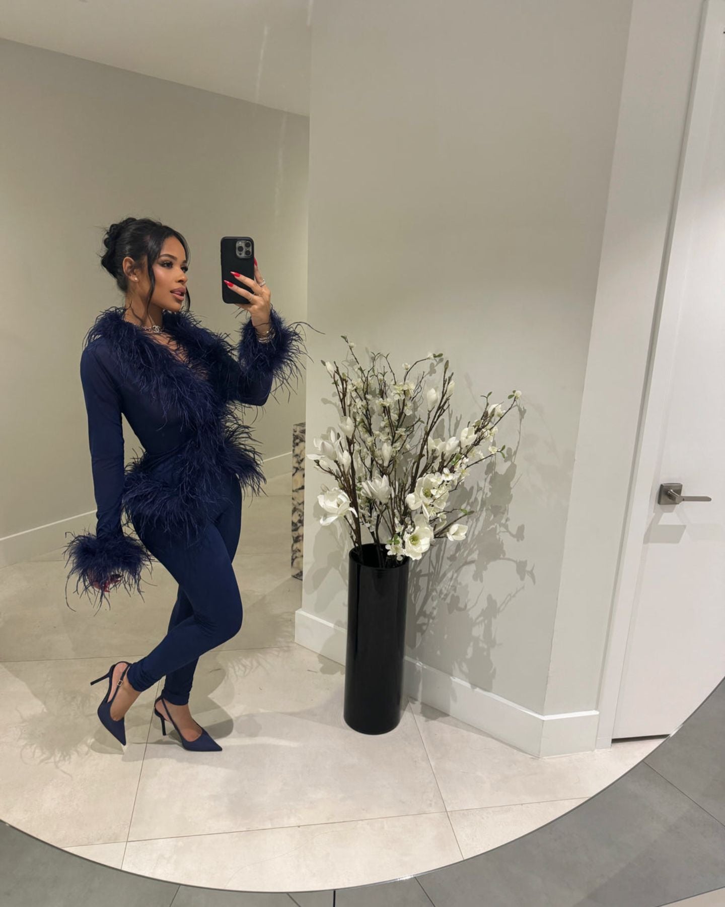 Indulge in unparalleled glamour with our luxurious Ostrich Feather Set — featuring a fluffy feather-rimmed top and sultry sheer leggings that exude elegance and allure. As seen on Taina. THIS ITEM IS CUREENTLY ON PRE-ORDER
